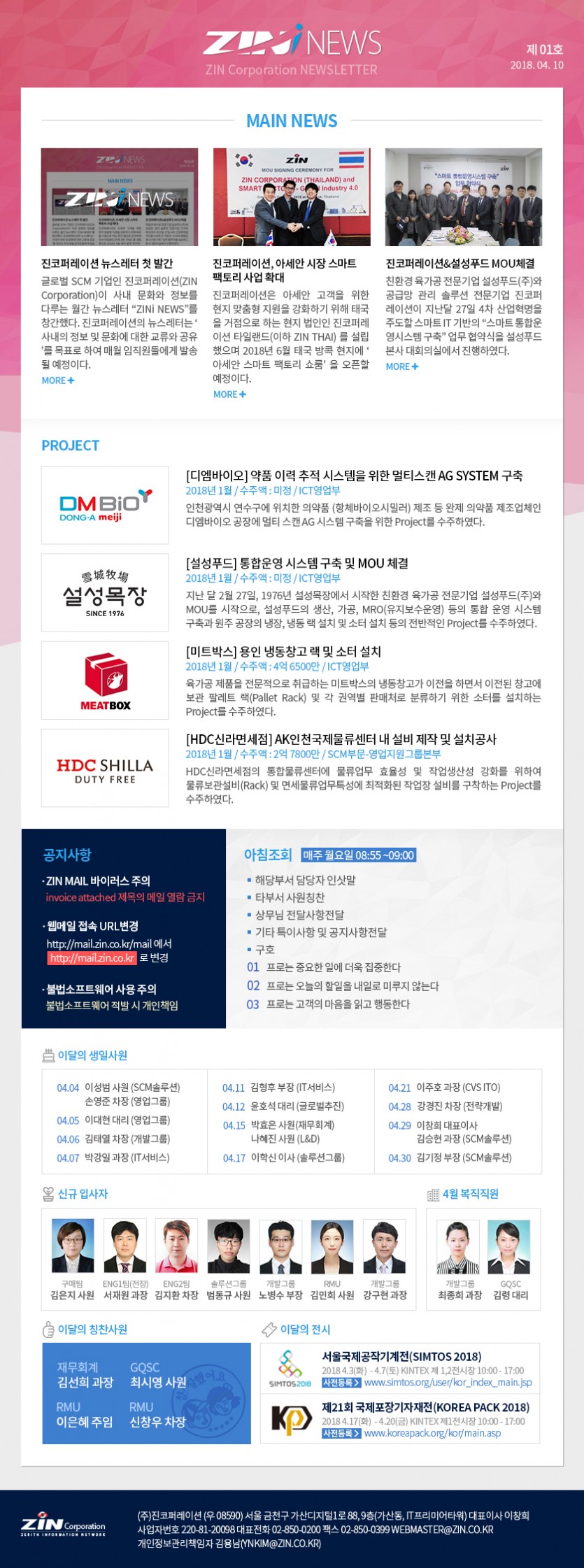 ZINi News는 매월 10일, 그룹웨어/메일을 통해 사내 임직원들에게 발송될 예정입니다.