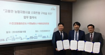 진코퍼레이션, 한농원·바이오미르젠과 '고흥만 농업지원시설 스마트팜 구축' MOU 체결